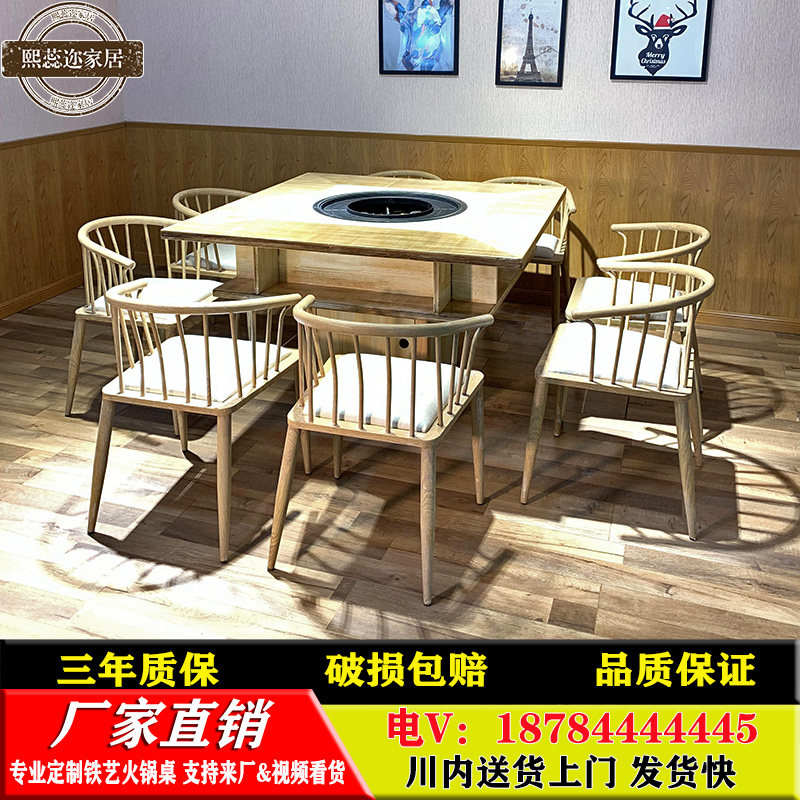Nordic Wind Iron Art Hot Pot Table And Chairs Kit Commercial Industrial Wind Cabinet Style Marble Induction Stove Hotpot Table Round Table
