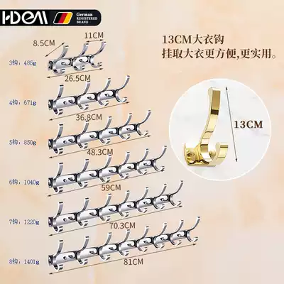 Heideman large clothes hook nail-free clothes adhesive hook perforated living room row hook Wall Wall coat hook Xuanlian closed door