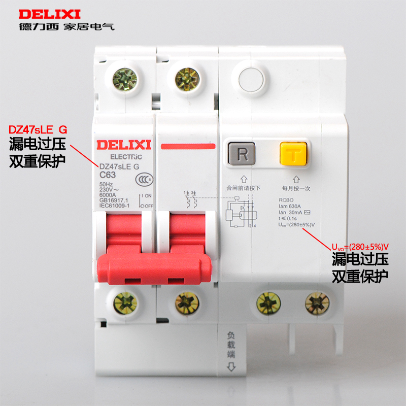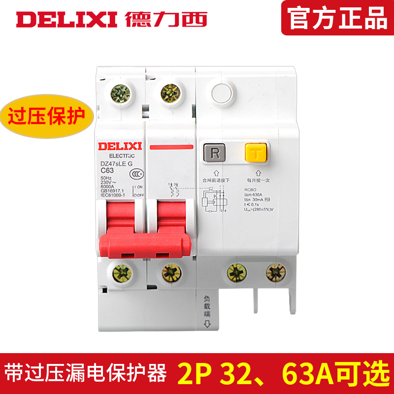 Delixi overvoltage protector 2P 63A leakage air switch 220v household air open circuit breaker short circuit switch