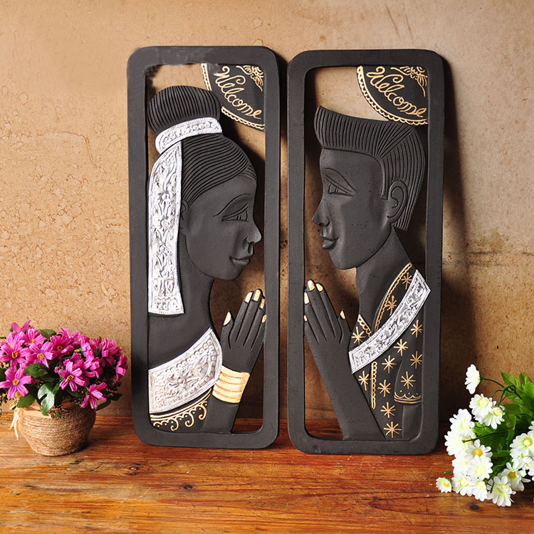 Thai imports Real wood Engraving Animals Characters Tin Art Hanging Board Gangway Wall Decoration Hyun Guan Wall Wall-mounted Hangings