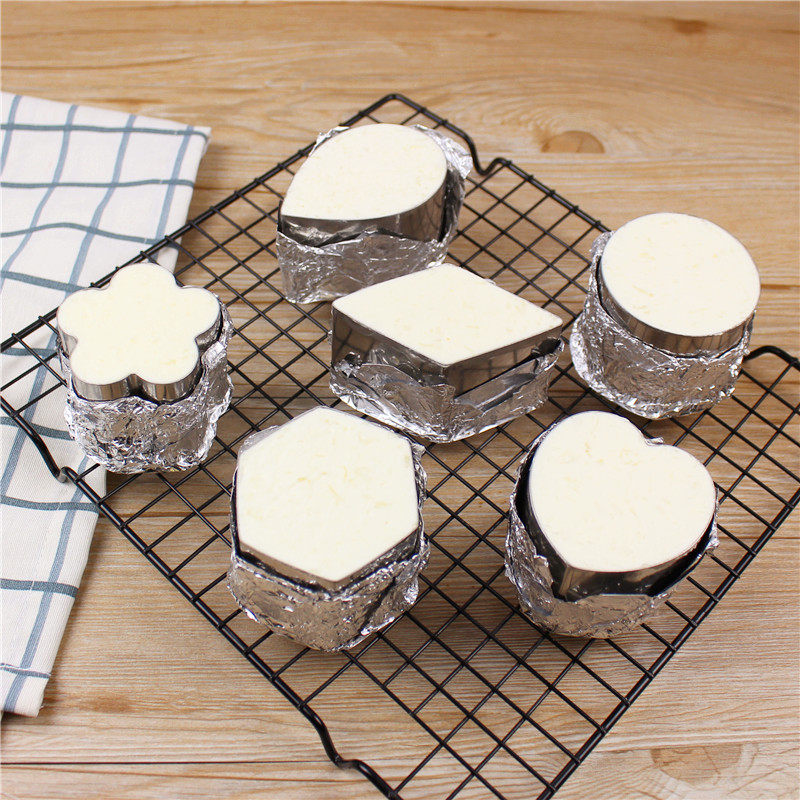 2 inch round mousse circles a 2 inch plum mousse circle a 2 inch heart shaped mousse ring a 2 inch rhomboid mousse circle a 2 inch hexagonal mousse ring a 2 inch drop shaped mousse mousse