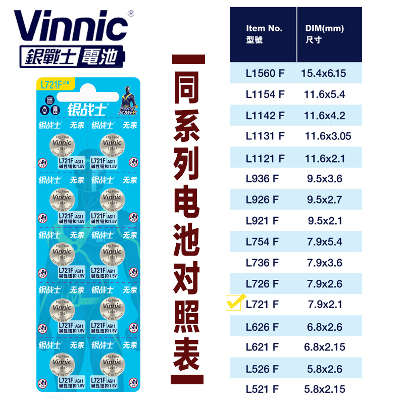 ag11 721 721F General Vinnic Silver Warrior Button Alkaline Battery SR721SW Watch Battery Longines Omega Sony Amani CK Electronic Watch Pass