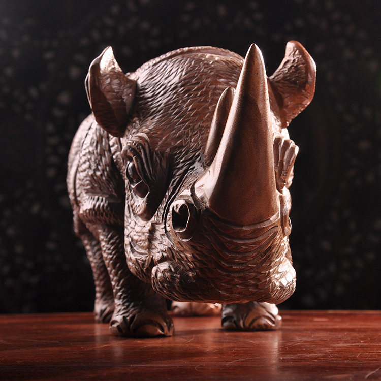 Thai wooden crafts Southeast Asian style solid wood carving animal rhinoceros home desktop decoration office decoration