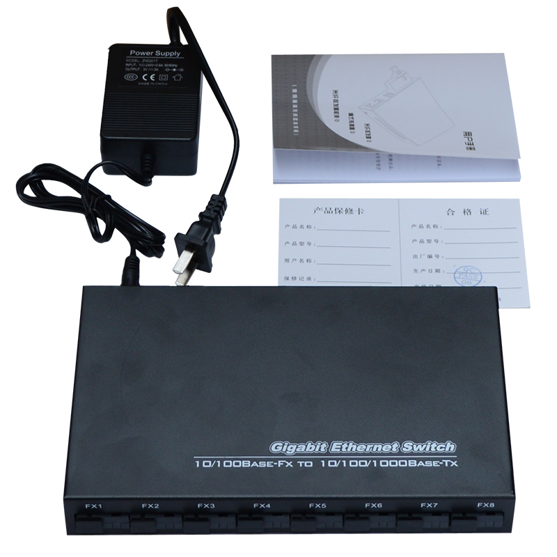 Sharp flash 100 gigabit 8 optical 2 electric fiber switch 8 optical 2 electric optical fiber transceiver photoelectric converter single mode single fiber 8 optical 1 electric 8 100 gigabit SC optical port 2 gigabit network ports