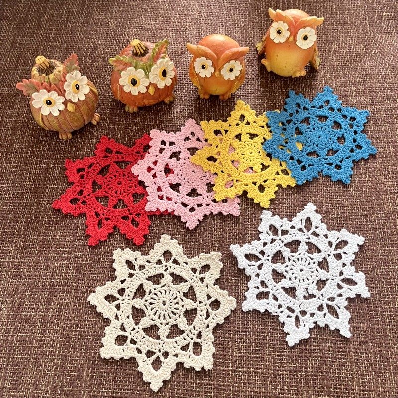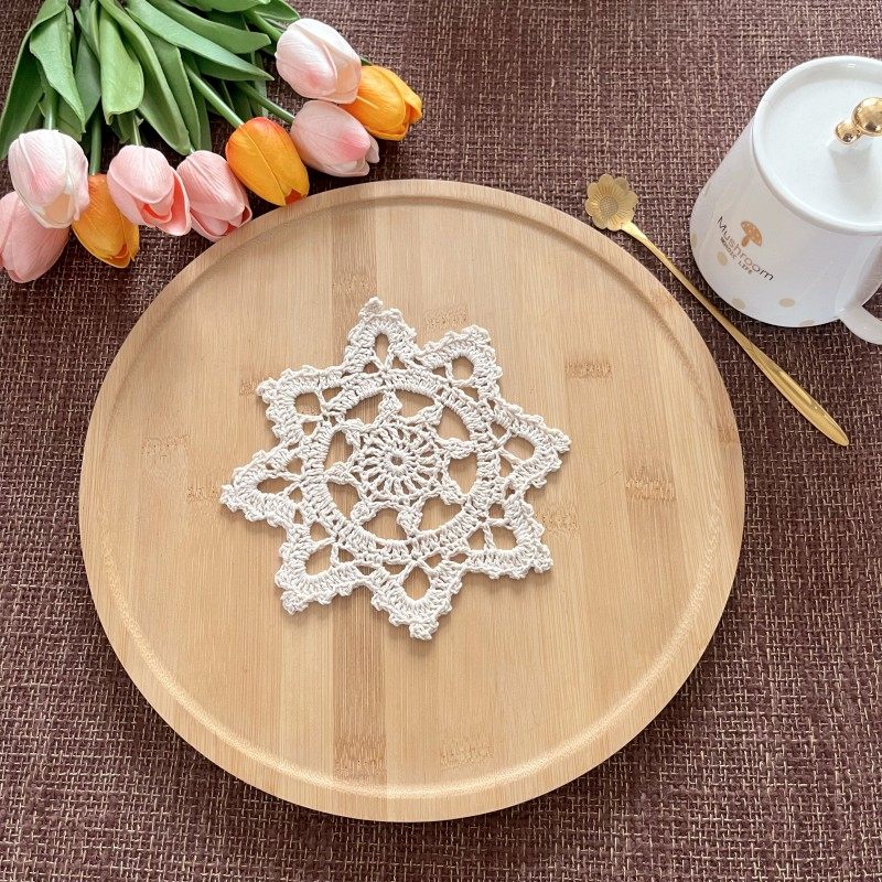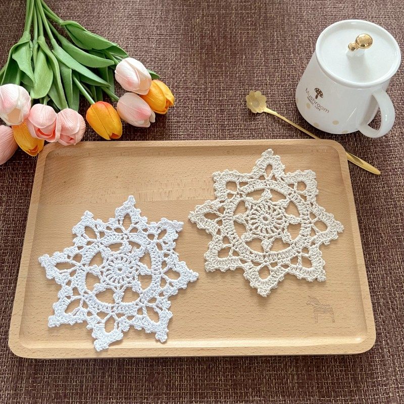 Pure handmade crochet star snow A32 about 15CM round American country coffee pad dinner plate vase pad niche wabi sabi
