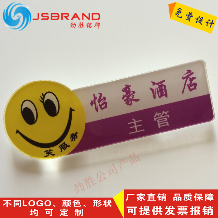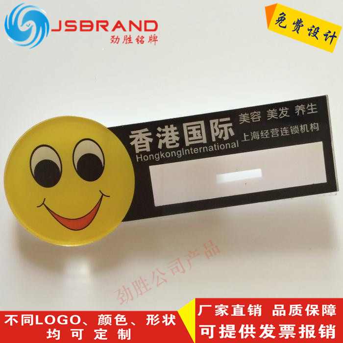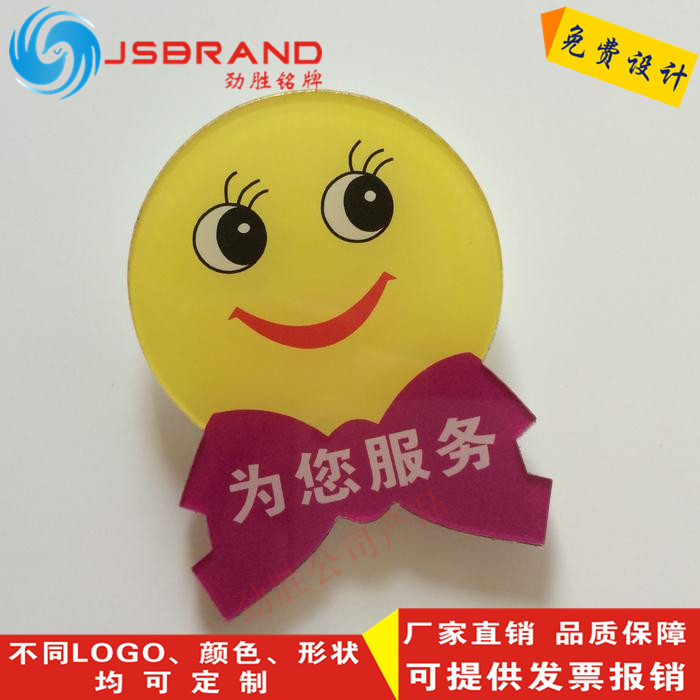 Smiley face badge employee smiley face badge acrylic waterproof sunscreen crystal plate name work number plate acrylic