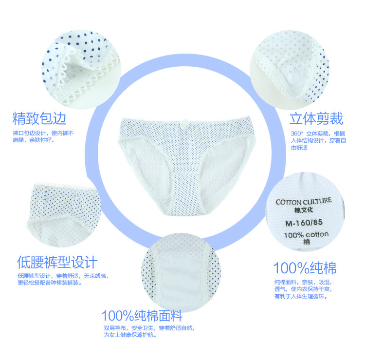 Cotton Culture Counter Women's Underwear Women's 100% Cotton Low Waist Briefs Cotton Fashion Polka Dot 15005