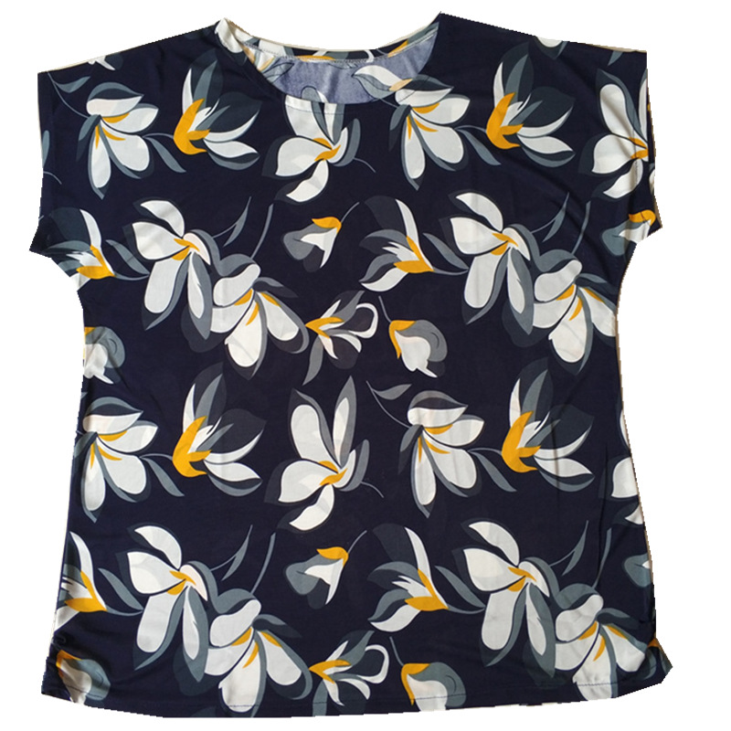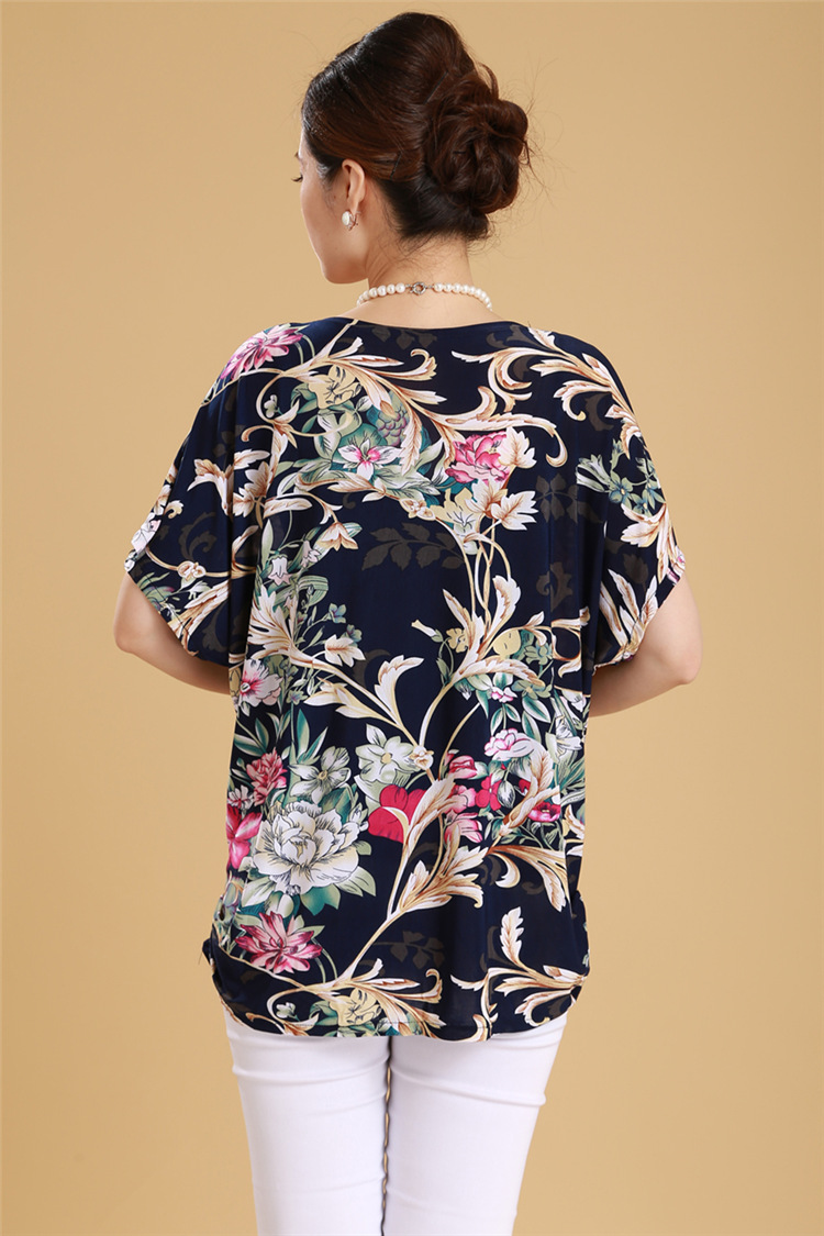 Middle-aged women's summer top t-shirt loose bat sleeve large size fat mother Middle-aged women fat 200 pounds round