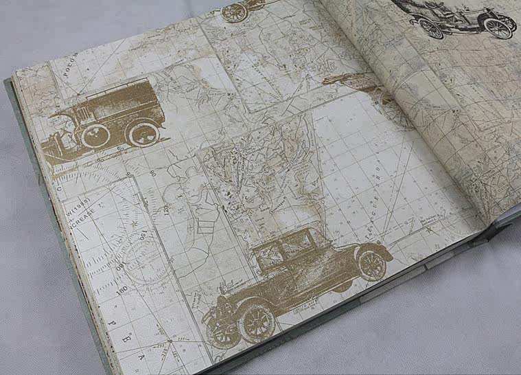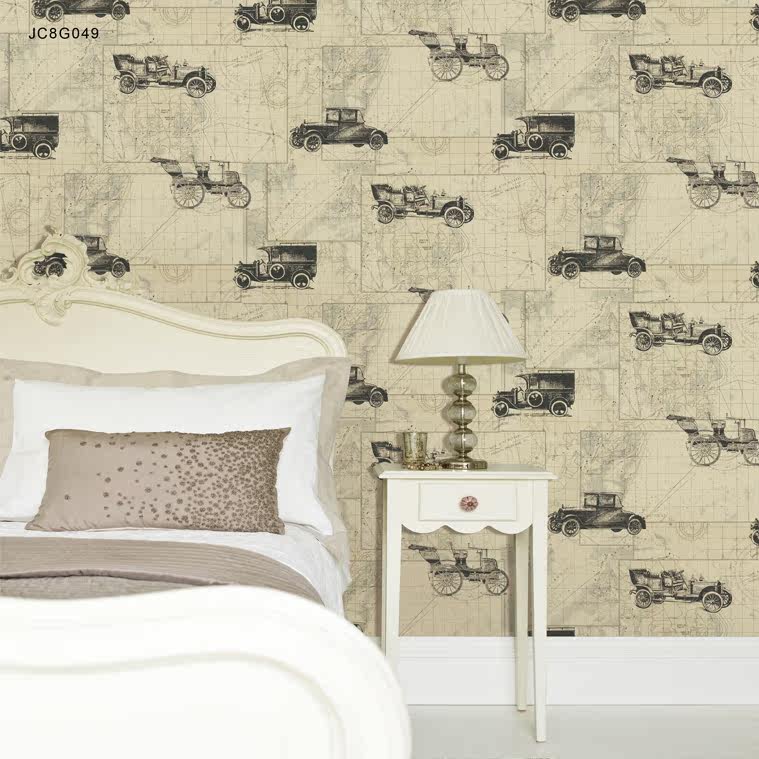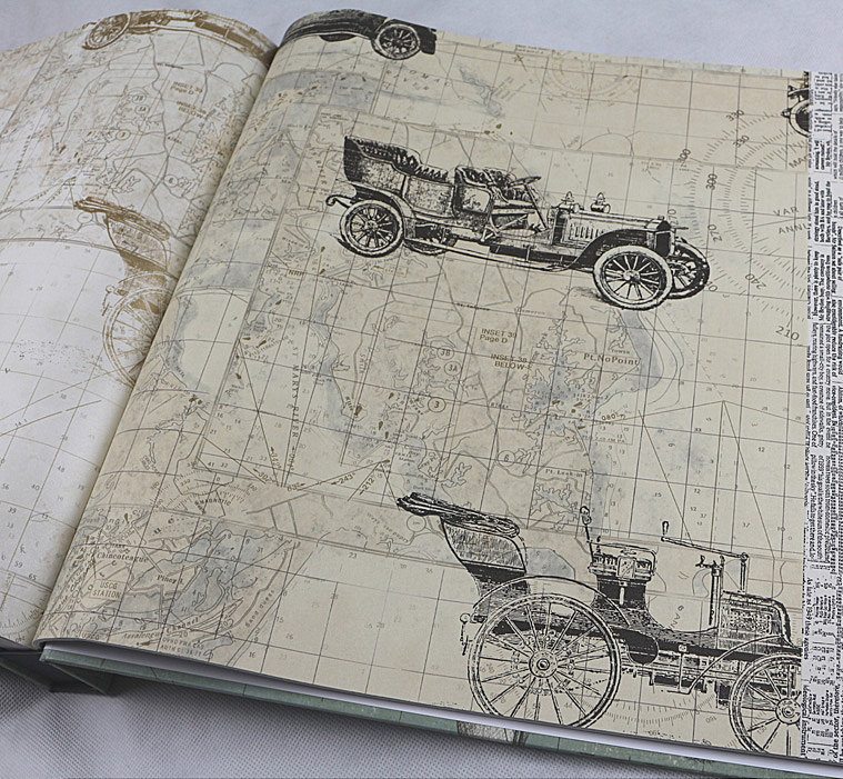PVC wallpaper Classic car car pattern wallpaper map wallpaper Mediterranean personality American style retro nostalgia