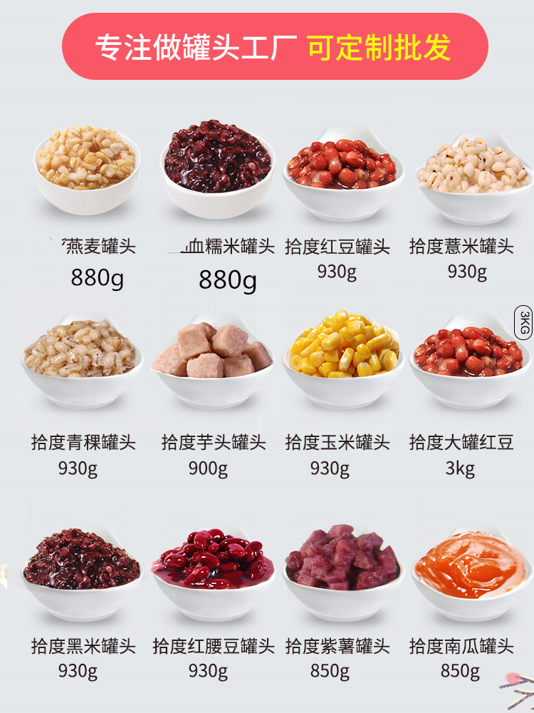 Canned oatmeal (buy 11 bottles free 1 bottle) canned mashed taro (buy 11 bottles free 1 bottle) canned chunks of taro (buy 11 bottles free 1 bottle) canned black rice (buy 11 bottles free 1 bottle) canned frozen sage (buy 11 bottles free 1 bottle)