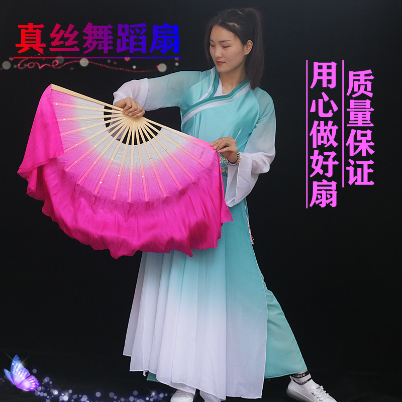 Fan bone 36cm throwback 25cm purple inverted dye genuine silk fan bone 36cm Dump Head 25cm Lake Blue Pour Dye Real Silk Fan Bone 36cm Thrower 25cm Mei red pour dyed true silk fan bone 36c