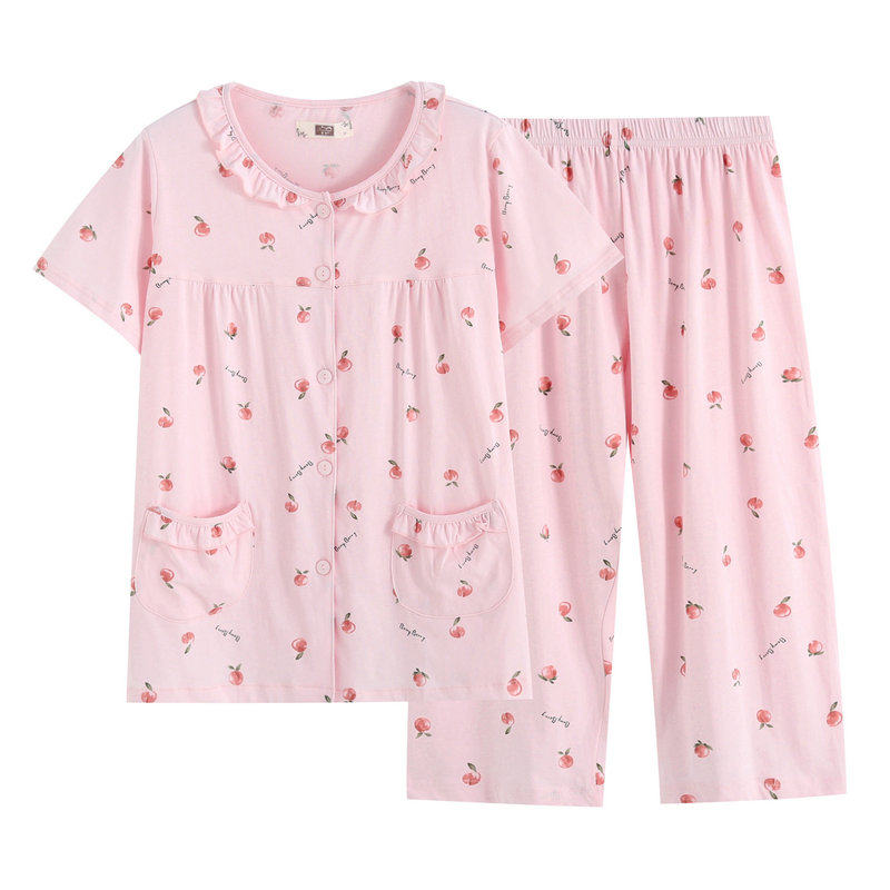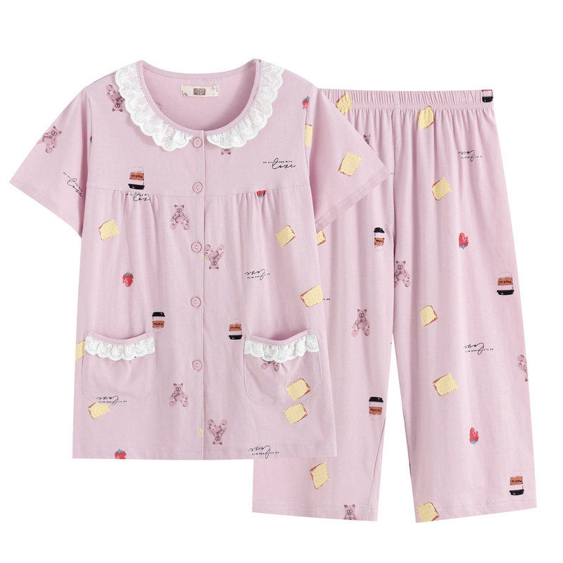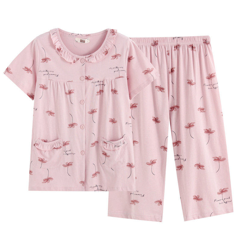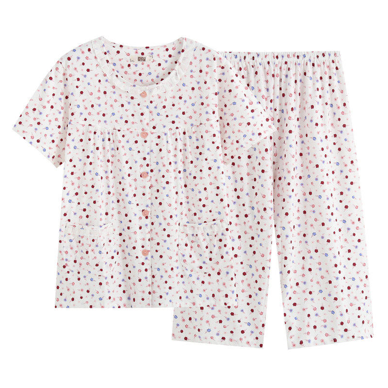 Pajamas Summer thin cotton short sleeve seven pants pajamas whole cotton mama pajamas cool cotton lady home dress