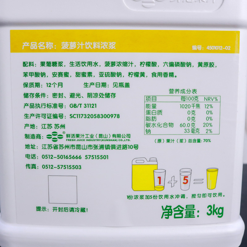 Fresh fruit juice Fruit Beverage Concentrated Pulp Coco Fruit Tea Milk Tea Special Pineapple Juice 3KG Concentrated Pineapple Juice