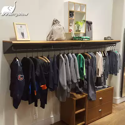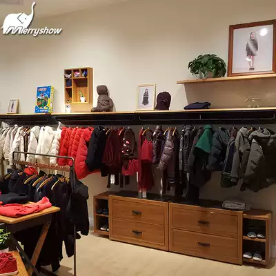 Japanese-style children's clothing store shelves display racks hanging on the side of the wall clothing store props decoration design children's clothing shelves