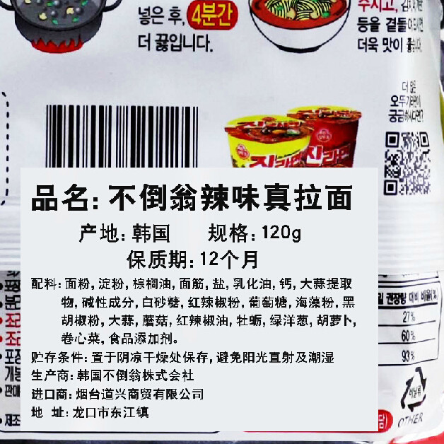 Korea imported instant noodles tumbler Okutoki real ramen Korean instant noodles spicy 120g snack