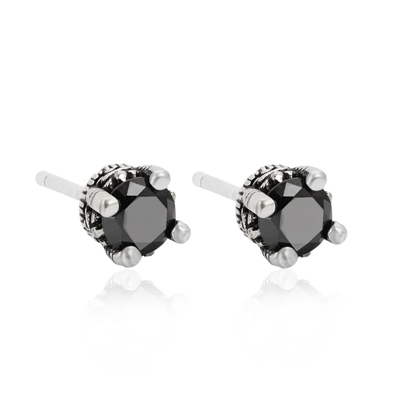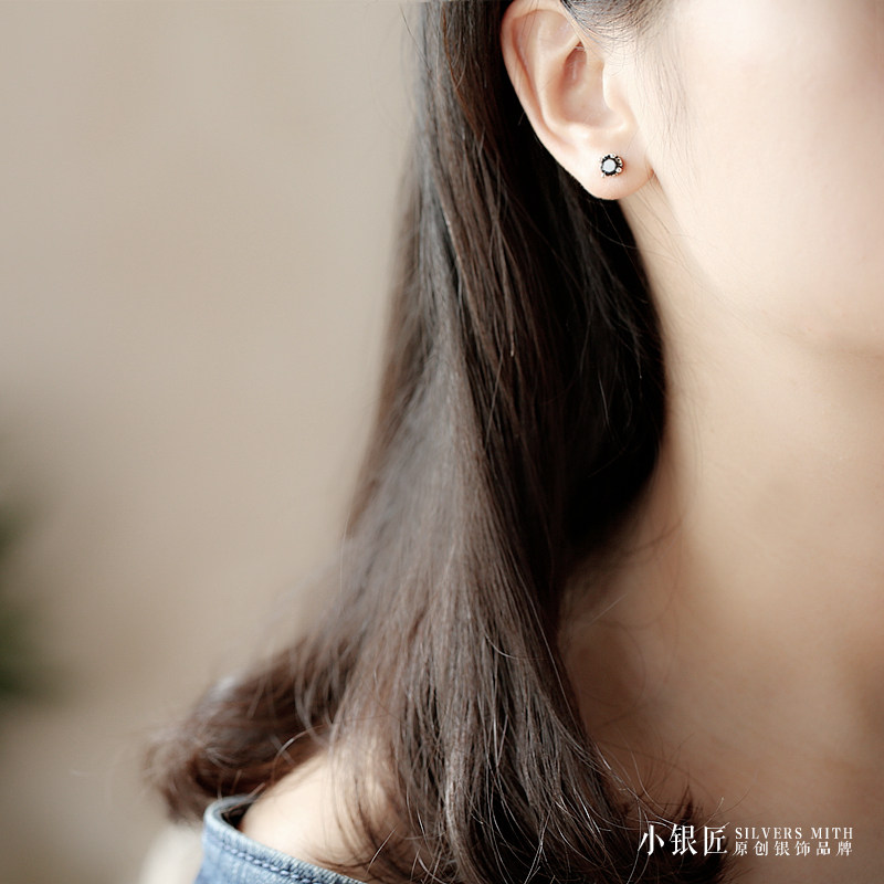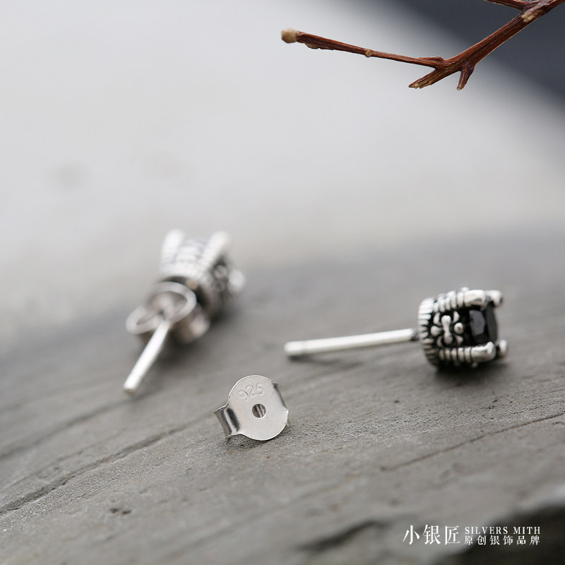 925 sterling silver ear needle natural black agate crown fashion simple personality temperament wild men and women earrings ear jewelry