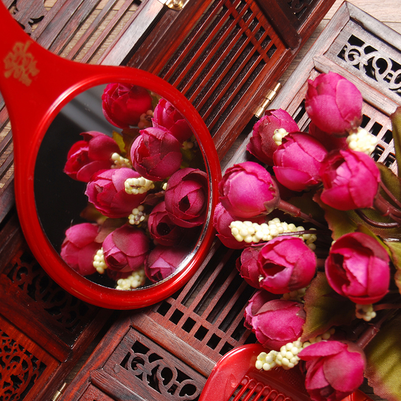 Bride wedding dowry Dragon and Phoenix mirror comb set Chinese style big red wedding supplies
