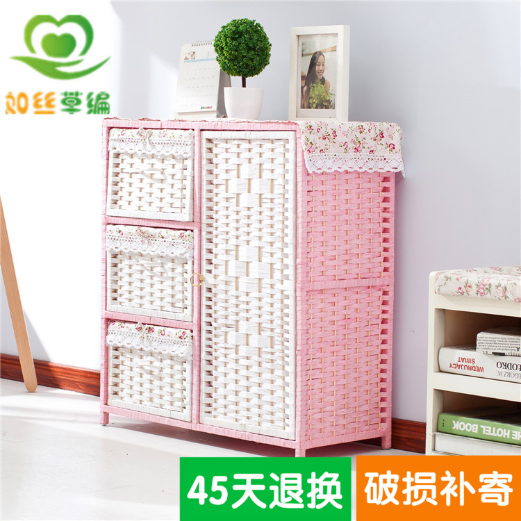 Large Number of Small Number of Grass Rattan Choreography Collection Cabinet Brief Oau Style Containing Cabinet Baby Wardrobe Bucket Locker