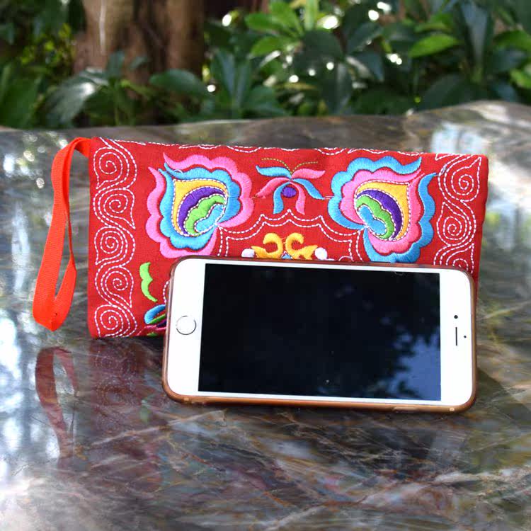 Yunnan ethnic bag female wrist bag embroidered coin purse female canvas art shopping mobile phone coin purse key bag
