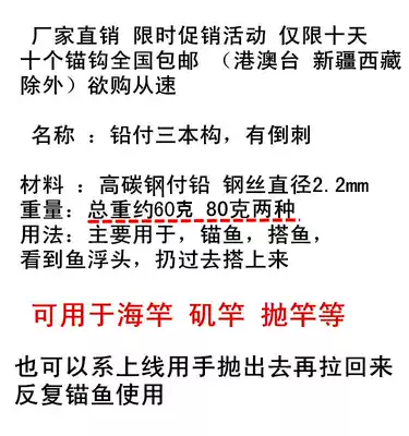 Three-claw with lead anchor fishhook Three-book barbed sharp trigeminal triangle Luya fishing oversized explosive hook fishing gear
