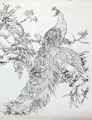 The fine line drawing papers Peacock fig White miao gao landscape painting flower-and-bird painting living room drawings physical 105