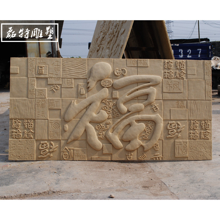 Relief Background Wall Chinese Artificial Sandstone Culture Stone Brick Home Clothing Background Foe Characters Solid Mural Relief Fu Characters
