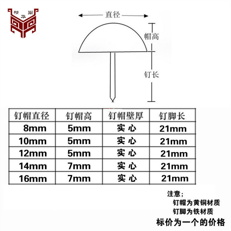 Antique hardware copper nail drum nail small foam nail cap pure copper foam nail small door nail drum nail copper nail sofa nail decorative nail