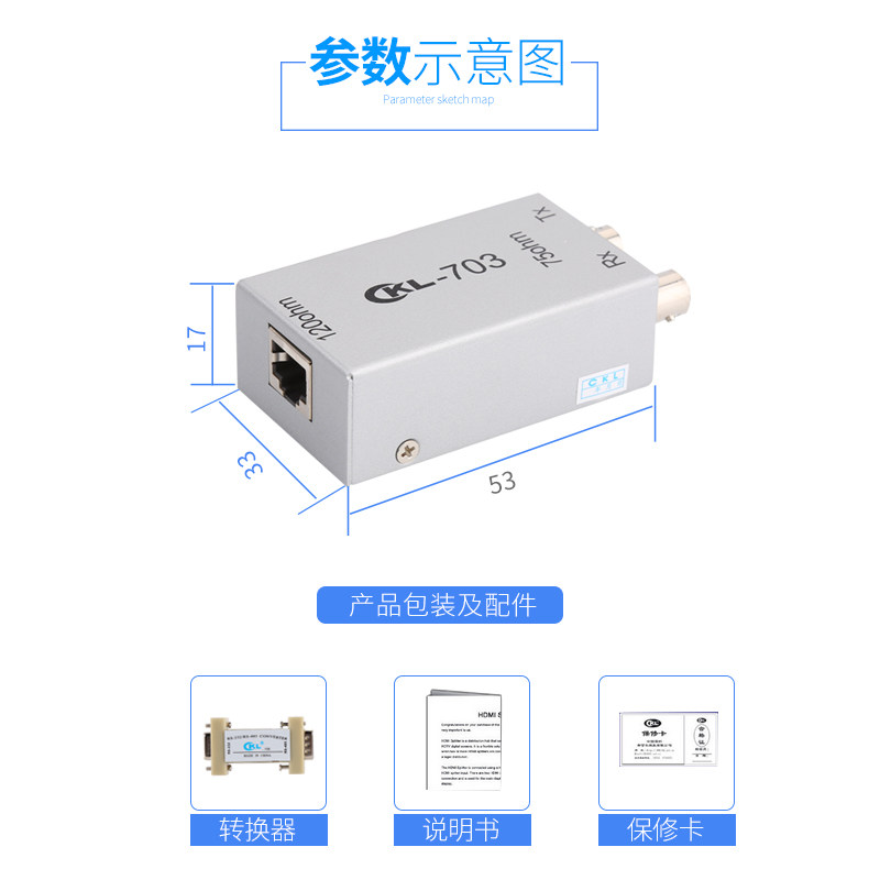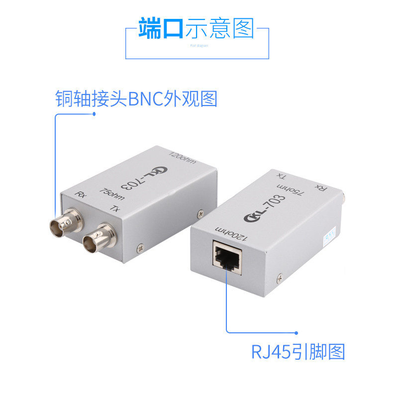 CKL703 bnc to rj45 converter 120 ohms to 75 Ohms bidirectional transmission unbalanced signal E1 protocol conversion Twisted pair network line to bnc connector