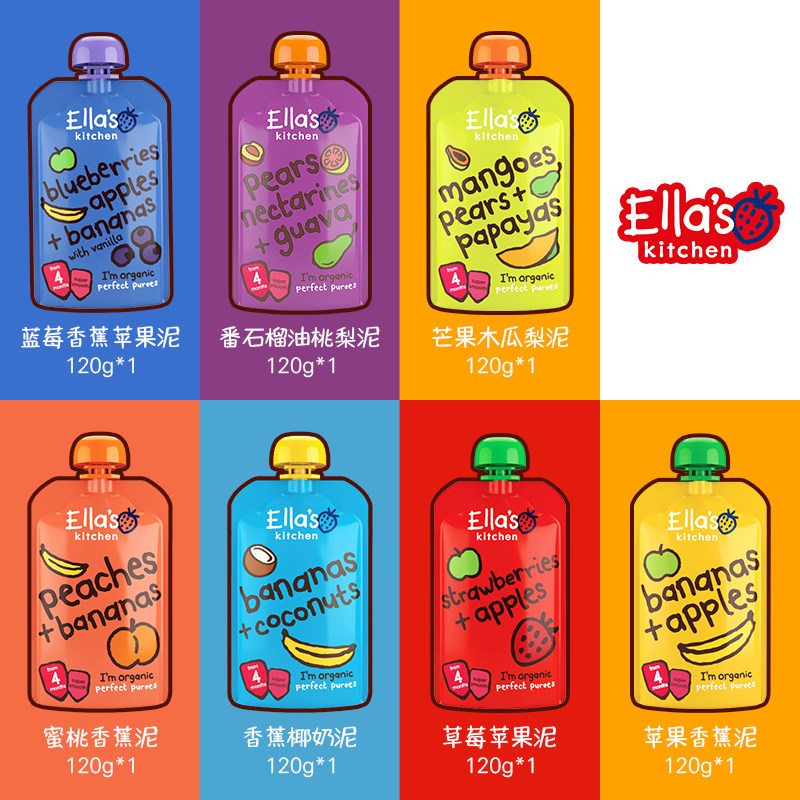 Ella kitchen mixed fruit puree 120g imported baby supplementary food puree suction bag 7 flavors available
