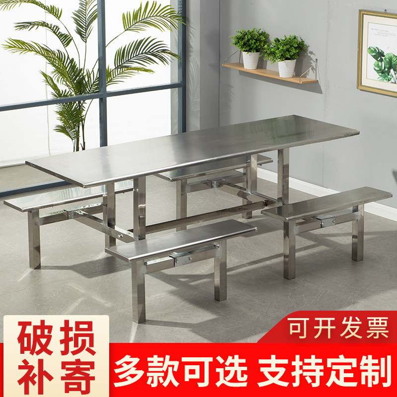 Staff canteen tables and chairs school Company restaurant factory canteen stainless steel conjoined dining tables and chairs 4 people 6 people 8 people