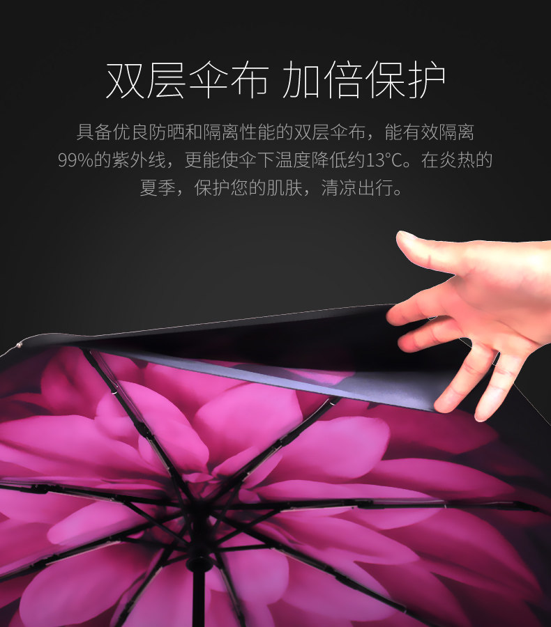 Automatic double sunscreen umbrella upf50 folding sun umbrella dual-use women anti-UV sun umbrella black glue