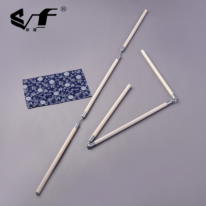 Kunfeng white wax rod wooden iron chain three-section stick performance martial arts stick three-section self-defense weapon props three-section stick