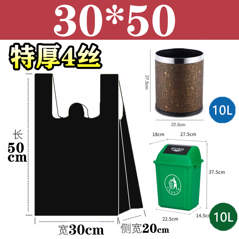 Medium thick vest garbage bag Black household large extra thick flat portable plastic bag Hotel supplies