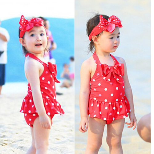 Children's swimsuit One-piece skirt Girl baby Girl child 1-3 years old 4 Princess 5 wave point Children's swimsuit