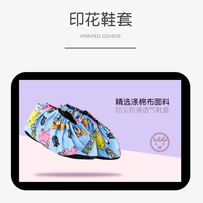 Household non-slip cartoon cloth shoe cover computer room indoor kindergarten students and children can repeatedly wash the color foot cover wear-resistant