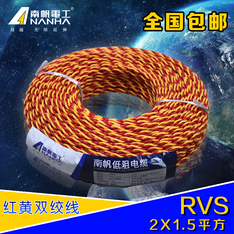 South sail wire RVS2 * 1 5 flat lighting power lace national standard soft wire 2 core multi-strand twisted pair 100 m