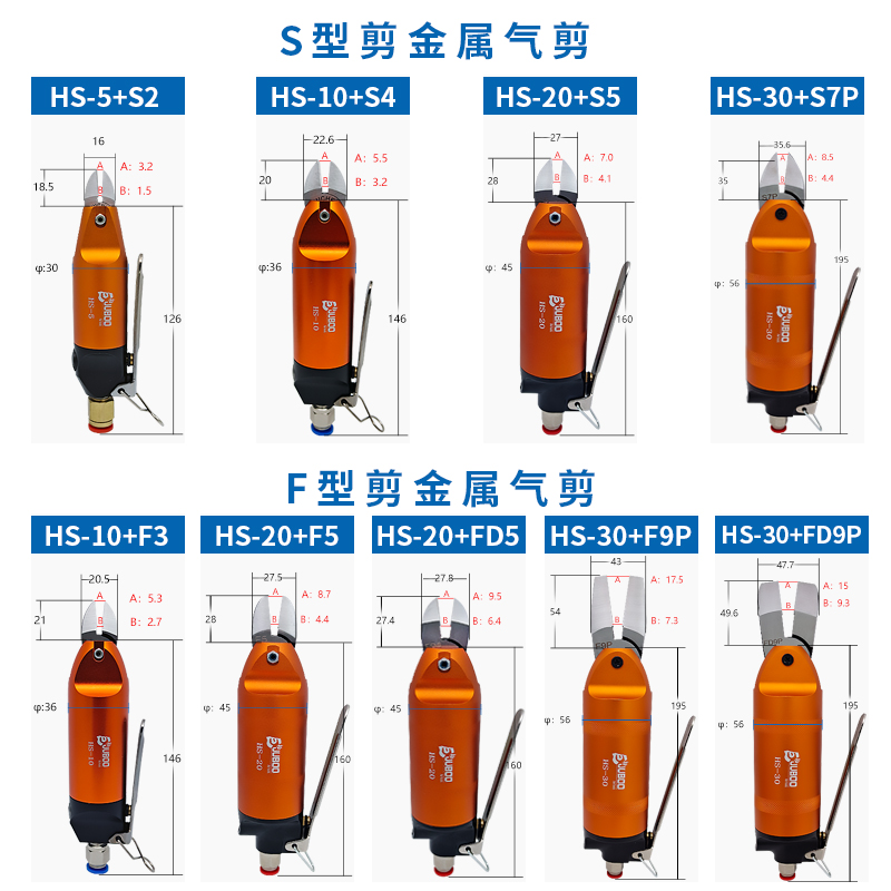 HS-5 Body (without blade) S2 single blade (copper cutting iron) HS-5 pneumatic shear (with S2 blade) copper-cutting iron HS-10 ontology (without blade) F3 single blade (scissor)