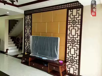 Density board through flower carved screen solid wood lattice entrance partition background wall size can be customized