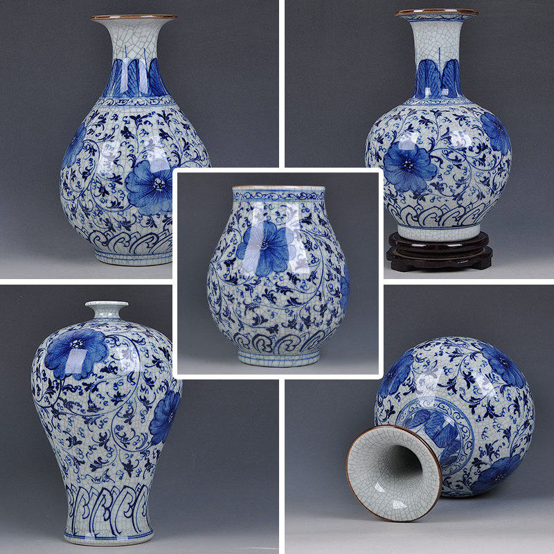 Hand-painted antique blue crack blue tube sending base hand-painted antique blue crack plum bottle feed base hand-painted antique blue crack jade jug base, hand-painted antique blossom crack bottle sending base