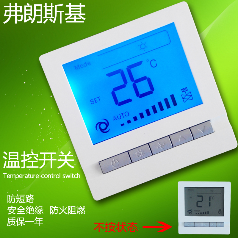 Francesky central air conditioning temperature controller ventilator coil liquid crystal temperature controller three-speed switch panel