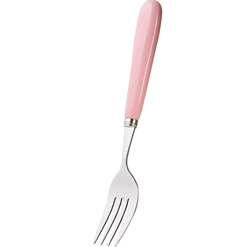 Blue Lotus Home Creative Blue Powder Ceramic Handle Stainless Steel Main Dinner Fork Dessert Fork Cake Fork Cute Western Fork
