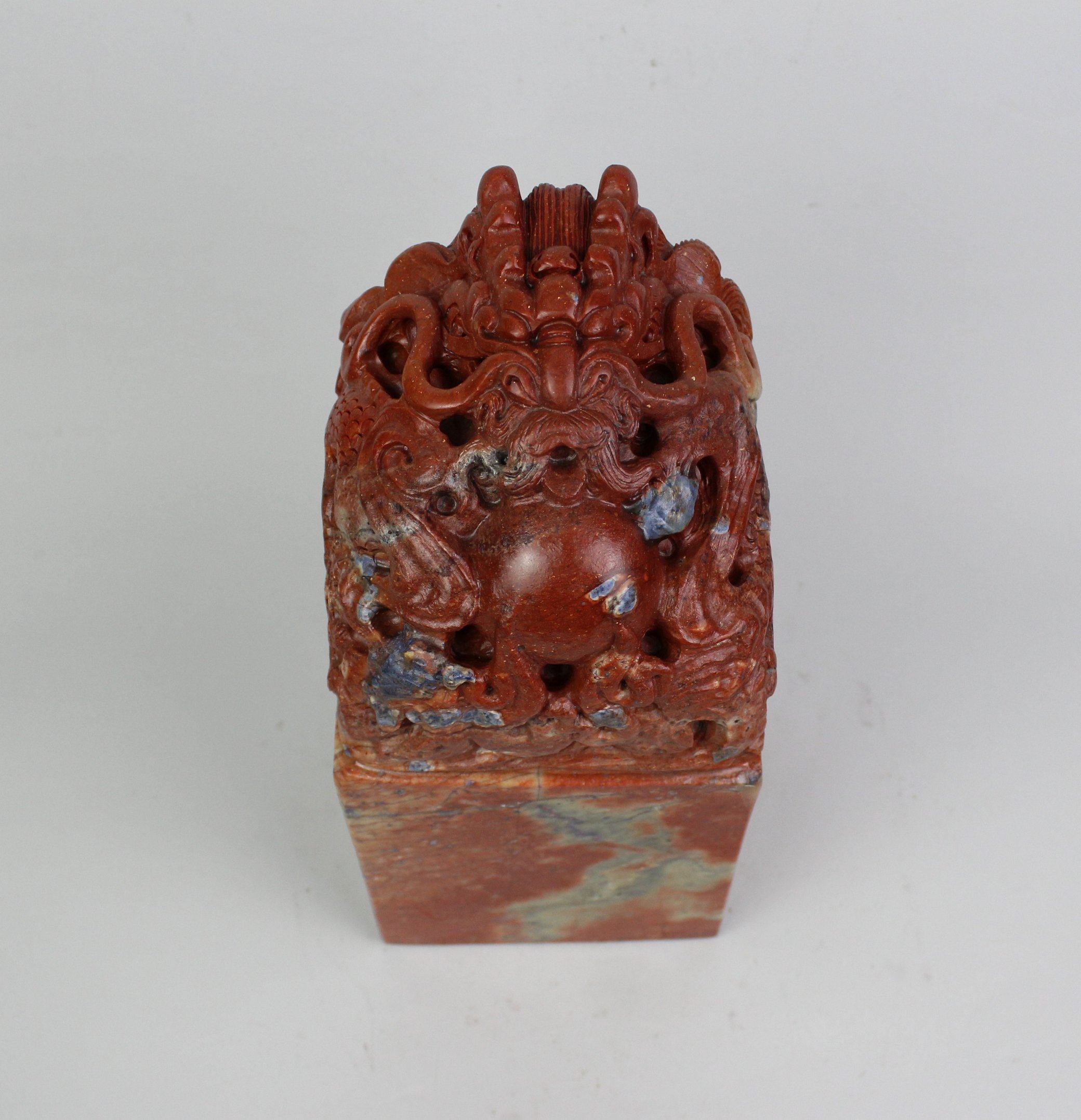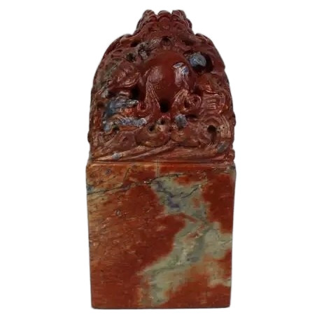 Mega Square Seal Dragon Seal 12 cm Red Flowers 9 kg exquisite natural green fields gold stone seal engraving Neoppel direct