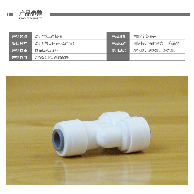 Water purifier conversion 2-point PE connector water filter Y444 type quick-connect 3-point two-split faucet diversion tee