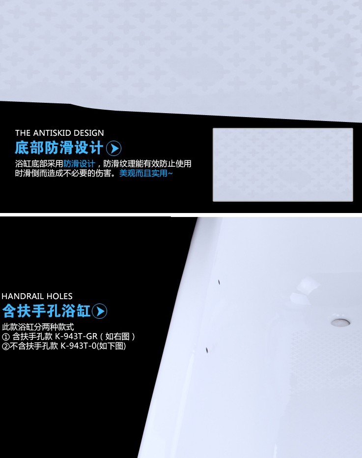 Cole K-943T-0-GR Soshan cast iron bathtub with armrests without armrests
