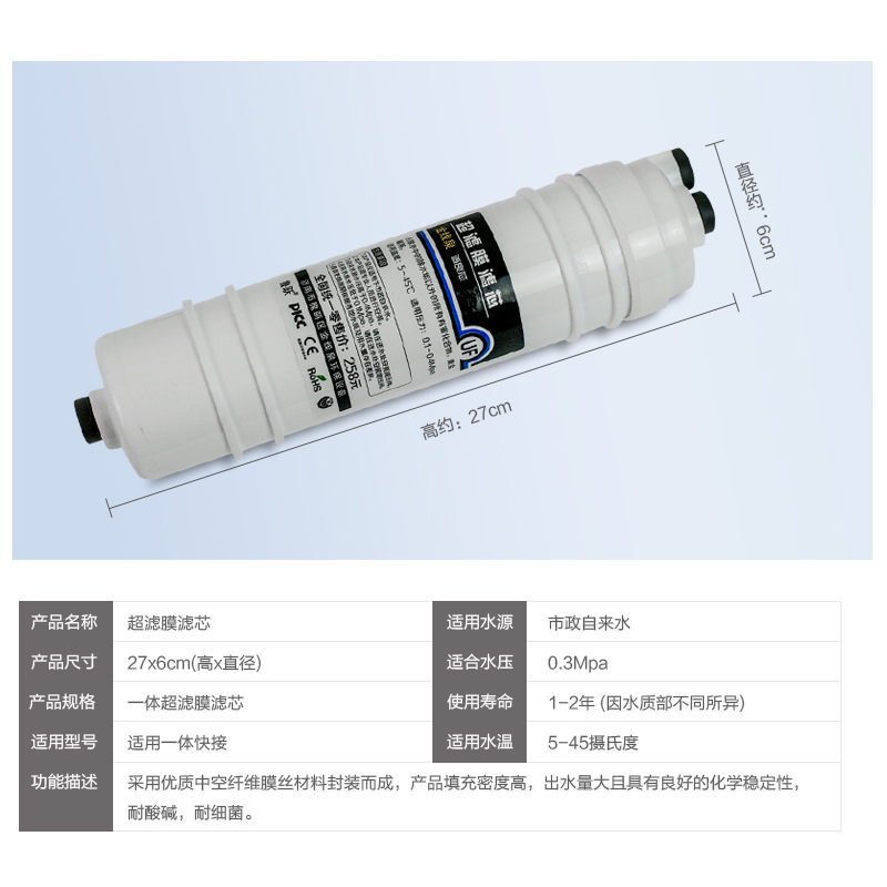 Golden thread spring Korean style quick connect UF filter element integrated kitchen water purifier filter ultrafiltration membrane disposable consumables