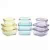 450ml Green square (small) 800ml Green square (medium) 1000ml Lemon yellow square (large) 550ml Lavender purple square (medium small) 550m