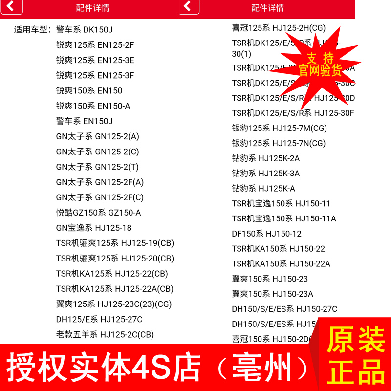 Authorized 4S shop applies EN150-A brake block TR150 rear brake pad DK150 Original KA150 anti-counterfeiting