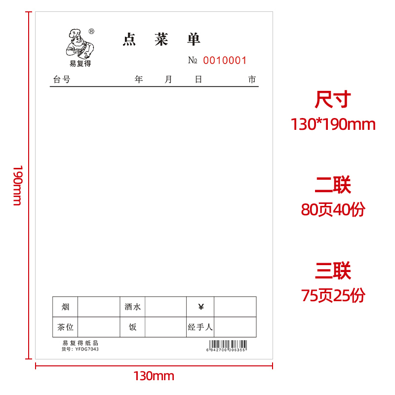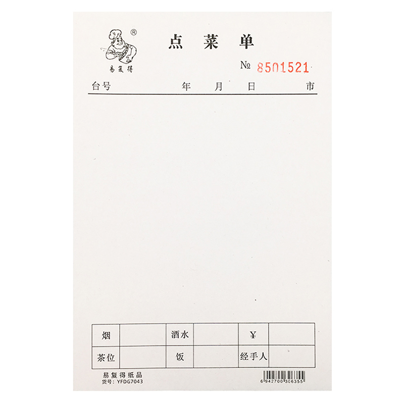 Easy to recover 32K 2 Universal Three blank point menu carbon copy restaurant and menu can be customized