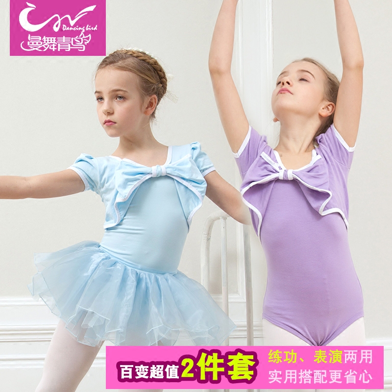 Children's ballet training clothes girls dance skirt cotton short-sleeved Chinese dance costumes dance clothes Liuyi yarn skirt
