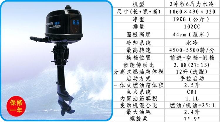 Sea flying 2 punching 6 5 horsepower 6 Horsepower 6 Boat Hull Wall-mounted Cold Air Marine Propeller Motor Outboard Motor Petrol Ship Tailplane